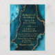 Cette faire-part de mariage élégante et séduisante est ornée d'un arrière - plan en marbre bleu turquoise avec des accents de parties scintillant en faux or. Le texte combine écriture manuscrite et polices sans serif modernes pour un look élégant et sophistiqué. Il conviendra parfaitement aux mariages d'automne et d'hiver.