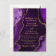 Cette faire-part de mariage élégante et séduisante est ornée d'un arrière - plan en marbre d'agate violet aux accents de parties scintillant en faux or. Le texte combine écriture manuscrite et polices sans serif modernes pour un look élégant et sophistiqué. Il conviendra parfaitement aux mariages d'automne et d'hiver.