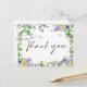 Un thème fleur sauvage et verdoyant merci carte postale. Le design comprend une bordure ou un cadre fleuri utilisant une variété de fleurs sauvages printaniers ainsi que des coccinelles et une libellule douce et un message personnalisable à l'arrière. Voir la collection complète des éléments de coordination ici : https://www.zazzle.com/collections/rustic_daffodils_and_spring_wildflowers_collection-119538053422552785?rf=238422957014002417