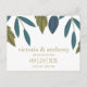 Ces cartes postales datées sont parfaites pour tout couple qui planifie une fête mariage moderne branchée. Le design présente des feuilles de feuillage dessinés à la main dans les tons bleu et vert sur un arrière - plan blanc propre et est fini avec un libellé simple à modifier. Le design simple peut être personnalisé pour convenir à votre événement spécial et sera le faire-part parfait pour toute fête à thème fleuri, y compris : douches nuptiales, fiançailles, wedding showers, fêtes d'anniversaire et bien plus encore.