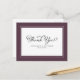Le design luxueux des Cartes de remerciements mariages violets présente une belle bordure chic dans le violet foncé qui comprend une élégante petite bordure blanche. La calligraphie et le script sont gris charbon sur un arrière - plan blanc. Personnalisez avec votre nom et votre date de mariage. Un modèle moderne pour la date et l'année complète le design calligraphique unique. [REMARQUE : L'affichage de la date du mariage tel qu'indiqué, utilise la barre ou la ligne verticale qui se trouve au-dessus du \ sur un clavier ou sur votre appareil intelligent avec les caractères spéciaux. Vous pouvez également customiser avec n'importe quel autre personnage de votre choix.] Le dos de la carte est blanc et offre de la place pour votre note manuscrite personnalisée pour ajouter cette touche très spéciale que votre famille et vos amis apprécieront!