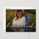 Partagez votre gratitude avec vos invités mariages pour avoir célébré votre grand jour. Ces cartes de remerciement personnalisables, belles, manuscrites police photo mariage sont une façon parfaite d'envoyer vos remerciements. Ajoutez votre propre photo, modifiez l'adresse de retour et ajoutez un message spécial ou laissez-le vide.
