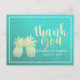 Modèles de carte postale Merci mariage - Elégant Couple d'ananas Faux Gold sur Turquoise vert et bleu turquoise Roses Floral Damask Paper Arrière - plan. Un design parfait pour votre grand jour. Tous les styles de texte, couleurs, tailles peuvent être modifiés selon vos besoins !