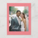 Mariage, Carte manuscrite "Merci", 1 photo. Minimal, moderne, beau. Nos Cartes de Remerciements Mariages sont une belle façon d'express votre gratitude à vos invités, votre famille et vos amis. Le recto de la carte vous permet de télécharger votre photo préférée du jour de votre mariage, en créant un souvenir significatif à chérir pour vos proches. Le dos de la carte est conçu dans un blanc simple et classique avec espace pour un message de remerciement personnel. Écrite dans une police de caractères stylée, votre message aura une atmosphère chaleureuse et manuscrite. Avec plusieurs options de couleur disponibles, vous pouvez sélectionner l'ombre parfaite pour compléter votre photo, assurant ainsi un look cohésif et poli. Ces cartes offrent une façon intemporelle et moderne de remercier ceux qui ont célébré avec vous, en leur laissant un souvenir sincère de votre journée spéciale.