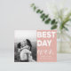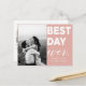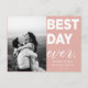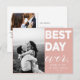 Dites merci avec cette carte postale Mariage moderne "Best Day Ever". Avec lettrage blanc sur arrière - plan coloré. Ce carte de remerciements à deux photos pourrait être utilisé pour une variété d'événements "du meilleur jour" tels que les mariages, les douches nuptiales, les baby showers, les naissances et les diplômes. Personnalisez en ajoutant vos photos préférées.Personnaliser couleur arrière - plan en cliquant sur "customiser plus loin"