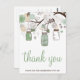Carte postale de remerciement Whimsical avec pots de mason suspendus, fleurs et tourterelles. Les articles correspondants sont disponibles dans mon magasin.