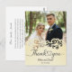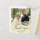 Carte de remerciement de mariage avec photo et cœur d'amour en écriture moderne.
