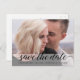 Customisez avec votre propre photo sur cette carte postale mariage "Save the Date". Annoncez votre fiançailles, personnalisez le texte avec vos détails mariages à venir. Félicitation !