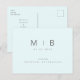 Carte Postale Mariage Monogramme bleu glace Enregistrer la date