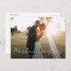 Carte de vacances faire-part mariage avec élégant script noir et un message de remerciement à vos invités. L'image des couples peut être personnalisée.
