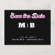 Monogramme rose et noir des années 70 Enregistrer la date. Mariage. Prénom et nom. Amusant. Carte postale.