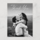 Mariage de photo de script élégant élégant carte de remerciements moderne élégant. Le dos a un message de remerciement que vous pouvez personnaliser pour chaque invité ou supprimer si vous préférez écrire votre remerciement à la main.
