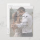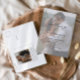 Elégant QR Code Photo Faire-part de mariage avec des détails de calligraphie de script élégants et une superposition de texte classique sur une photo verticale portrait sur le devant. Le dos a une photo de fond et des détails RSVP. Cliquez sur le bouton Modifier pour customiser cette conception.