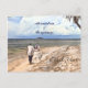 Mariage Photo Tropical Watercolor Merci Postcard a une belle mariée et mariée en couple mariage jouissant d'une promenade romantique sur la plage avec les palmiers, l'eau bleue des Caraïbes et le ciel. Photographie de Denise Bennerson, photographe prise sur une belle plage de Sainte-Croix aux Iles Vierges américaines.