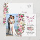 Boho rose violet chic abstrait rose floral photo mariage merci carte postale. Cette modèle photo rose couleur violet et rose Merci carte postale est un bon choix pour un mariage d'été ou un mariage d'automne/automne (peut utiliser ce mariage sauf la carte postale de date pour un mariage de printemps ou d'hiver aussi). Cette mariage de fleurs roses merci carte postale présente une belle aquarelle abstraite rose violet et rose blanche bouquets avec feuilles et autres feuillages. Cette carte postale de mariage rose merci a un look chic boho élégant (bohème). D'autres personnalisations sont possibles (police, couleur de police, couleurs arrière - plans, etc.), en cliquant sur "cliquer pour customiser le lien" sous les options de personnalisation. Contactez le concepteur si vous souhaitez que d'autres éléments correspondants soient associés à cette conception qui n'est pas déjà incluse dans la collection.