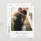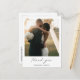 Simple Photo Mariage Carte postale Merci avec "merci" en calligraphie avec vos noms sous votre photo préférée. Le côté arrière a votre message de remerciement personnalisé en noir et blanc. Un design minimaliste avec typographie chic pour une touche élégante.