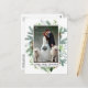 Élégante Photo de Mariage de la Mariée et du Marié avec Cadre de Pins de Feuillage à l'Aquarelle Remerciements Carte de Remerciement
