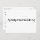 Ce design simple a raison. Dans une police de caractères conviviale de machine à écrire, j'ai placé "#ajournedMarriage" au centre de l'avant. Peut-être voudriez-vous un autre hashtag. C'est une option! Au contraire, il y a une configuration plus traditionnelle avec des champs supplémentaires pour une variété de détails importants. Changez n'importe lequel de ceux-ci comme vous le jugez bon. Vous pouvez également changer la police et les couleurs arrière - plans si vous le souhaitez.