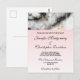 Carton d'invitation de mariage avec un motif marbré élégant et moderne. Marbre gris fumé et blanc avec de minces rubans dorés qui tourbillonnent dans tout le motif. Un fond dégradé rose clair sous le motif marbré.