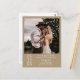 Cette belle carte postale est la meilleure façon de faire connaître à vos amis et à votre famille votre prochain mariage. Dispose d'un design minimaliste simple avec son art, moderne et élégant, y compris votre photo sur un arrière - plan marron châtaignier avec un texte simple contenant toutes les informations vitales.