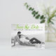 Mariage de chaux vert moderne Enregistrer la carte postale de la photo Date. Cette typographie contemporaine Save the Date design comprend une photo en noir et blanc du couple et le texte "Save the Date" dans une police de caractères de script moderne.