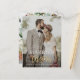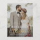 card design with a photo of the bride and elegant white brush typographiy The text and colors be personalized.