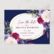 Annoncez votre journée spéciale avec style avec notre captivante carte postale Navy Blue Burgundy Peony Geometry Save the Date. Cette superbe carte postale présente un mélange parfait de motifs géométriques modernes et de fines florales de pivoines dans des tons bleu marine et bordeaux. Partagez votre histoire d'amour avec vos amis et votre famille en personnalisant cette carte postale avec vos noms, votre date de mariage et un message sincère. Envoyez-le pour vous assurer que vos proches marquent leur calendrier et rejoignez-vous pour cette occasion joyeuse.