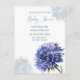 Marine bleu floral élégant garçon baby shower Carte postale avec aquarelle bleue Cornflower