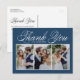 Script Navy Blue Trois Photo Collage Mariage Merci carte postale | Envoyez des remerciements à votre famille et à vos amis pour avoir participé à votre journée spéciale avec ce collage photo personnalisable merci carte postale. Il est doté d'un script élégant et d'une typographie simple avec un arrière - plan bleu marine. Personnalisé en ajoutant vos propres détails et en affichant vos photos mariages préférées.