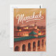 Découvrez l'esprit animé de Marrakech avec cette carte postale de style vintage qui présente les souks animés de la ville, les palais ornés et la célèbre mosquée de la Koutoubia. Riche en couleurs et en culture, le design reflète le charme exotique et l'attrait intemporel de la ville rouge du Maroc. Idéal pour les amateurs de patrimoine nord-africain, d'art de voyage vintage et d'architecture historique.