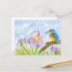 Cette carte postale présente un martin-pêcheur vibrant perché sur une branche, entouré d'iris violets et blancs qui ondulent doucement. Peinte dans un style aquarelle libre, la scène capture une brise légère qui souffle à travers les fleurs, créant un moment paisible dans la nature.