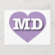 Cette carte postale présente un coeur de lavande informe contenant les lettres coques supérieures MD, gras, blanches, l'abréviation officielle du Maryland, l'état de l'ancienne ligne. Le verso de la carte postale est vide, en attendant votre texte customisé ou vos sentiments manuscrits.
