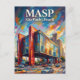The São Paulo Museum of Art (MASP) is a landmark of modern architecture designed by Lina Bo Bardi. Its main body is suspended by two massive red concrete pillars, creating a large public plaza underneath.