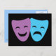 Cette illustration dramatique présente un masque comique violet riant avec un sourire et un masque tragique bleu et triste pleurant avec un sourcil ! Ce design de masques de théâtre classique est le cadeau parfait pour un acteur ou une actrice ou toute personne qui aime le théâtre, Shakespeare ou se produire sur scène!