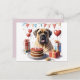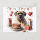 Deux beaux mastiffs anglais. Le mastiff anglais célèbre son anniversaire avec de nombreux cadeaux merveilleux. Un grand gâteau avec de nombreuses bougies est posé sur la table. Le chien est assis à table avec de nombreux cœurs et une décoration festive. Magnifique femelle mastiff anglais ancien. Le mastiff est un molosse et un très bon chien de garde. C'est un géant fier et très doux. Cette race de chien est un dogue anglais, extrêmement affectueux et très fidèle. Un excellent chien de famille toujours équilibré. Un cadeau pour tous les propriétaires de chiens.