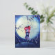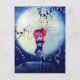 "Moonlit Misfit" Une fille gothique, comme une poupée, aux pigtails rouges enflammés se dresse sur une colline surréaliste sous une lune pleine et brillante. Vêtue d’une tenue sombre ornée de crânes et d’un lapin cousu, elle est entourée de tentacules rayées blanches et blanches géantes qui se tortillent dans un ciel étoilé.