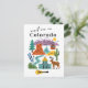 Ascend to new heights with this charming 'Meet Me in Colorado' postcard, featuring a delightful collection of Colorado icons in a fun doodle style! This whimsical illustrated postcard captures the state's majestic Rocky Mountains, vibrant outdoor lifestyle, and unique landmarks. It showcases everything from snow-capped peaks and ski lifts to red rock formations, the State Capitol building, and an elegant elk. The playful illustrations and clear lettering make this postcard a unique and memorable tribute to Colorado, USA.
