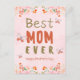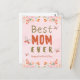 Cette charmante carte postale de la Fête des Mères est une célébration de l’amour maternel, ornée d’un délicieux tableau d’aquarelles. L'expression "Meilleure MOM EVER" occupe le devant de la scène dans des lettres audacieuses et surdimensionnées, avec un mélange de chaudes couleurs terre cuite et olive qui transmettent force et sincérité. Le lave arrière - plan de rose doux fournit une toile tendre pour le message et les illustrations. Des fleurs saintes dans les nuances de corail et de pêche fleurissent le long du bord du fond, donnant un sentiment de croissance et d’épanouissement - un clin d’oeil au rôle de la mère. Des papillons délicats dans une orange translucide flit autour des mots, symbolisant la transformation et la douceur des soins d’une mère. Terminer la conception est le message sobre mais doux "Bonne fête des mères" en bas, s’assurant que l’intention de la carte est claire et ciblée. Cette carte postale allie chaleur, affection et beauté de la nature pour rendre un hommage sincère à la fête des mères.