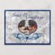 Carte postale Mer et voeux sur le thème nautique. Avec une photo en forme de coeur avec arrière - plan gris argenté et coquillages bleus