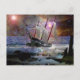Mer implacable.. -Carte postale. Photographie manipulée. Un navire est détruit par la mer implacable. Contre un beau ciel étoilé.