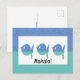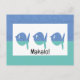 Trois poissons amusants dans l'océan Pacifique, avec une mer bleu-vert en dessous et un ciel bleu au-dessus sur cette adorable carte de remerciement. Mahalo ! Cela signifie Merci en hawaïen. Vous pouvez cliquer sur Personnaliser pour changer le mot sur le devant, ou les mots au dos, qui donnent actuellement la traduction anglaise du mot hawaïen pour Merci.