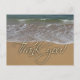 Plage de sable avec vagues bleues de l'océan, mousse blanche et "Merci" en caractères blancs. Parfait pour mariage, anniversaire ou anniversaire, merci notes pour les occasions spéciales de destination / plage.