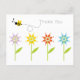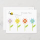 Carte postale Merci avec un délicieux éclat de couleur avec des fleurs de marguerite rouge, bleu, violet et jaune. Un bourdon joyeux bourdonne par les mots - Merci ! - une façon parfaite de apprécier l'express. Illustration originale de Mango Moon Studio.