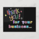 Cette carte postale colorée et lumineuse est agréable à envoyer à la clientèle pour améliorer votre clientèle d'affaires. Faites une impression positive sur ceux qui utilisent vos services d'affaires ou qui font des achats auprès de vous. Un gentil merci vous est toujours rappelé.