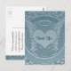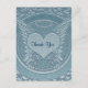Carte de remerciements d'ornement bleu clair pour mémoriaux, funérailles et éveillements avec un coeur, des ailes d'anges et un halo.