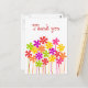 Carte Postale Merci Cute jaune rose orangé fleurs simples
