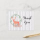 Une carte postale de remerciement pour une fête ou un autre événement/événement. Conçu avec une aquarelle numérique. Une silhouette de renne orange pastel à l'intérieur d'une couronne de feuilles d'herbes. Champignons et fougères forestières à ses pieds. Un motif de bouleau gris pâle dans l'arrière - plan.