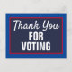 Merci pour le design de vote. Avec de nombreux citoyens américains utilisant le vote par correspondance pendant la pandémie, et d'autres profitant du vote anticipé en personne, nous avons un jour d'élection mais de nombreux jours de vote. Remerciez vos voisins d'avoir voté avec ce design clair, concis et direct dans des couleurs personnalisables. Description du design : Un rectangle bleu foncé avec une bordure blanche occupe la majeure partie de l'espace de design. Au milieu du rectangle se trouvent les mots "Merci d'avoir voté" en blanc, en police sans empattement et en majuscules. À l'extérieur du rectangle se trouve une bordure bleue moyenne pour le contraste. Les couleurs sont personnalisables.