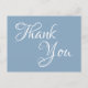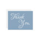 Message de calligraphie blanche personnalisable "Merci !". Carte postale bleu gris ou bleu et blanc poussiéreux. Une police chic pour mariages, mariés et baby showers et autres événements. Customiser les couleurs des arrière - plans et des polices.