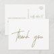 Cette carte postale en or fantaisie est parfaite pour un mariage moderne. Le design se compose d'une typographie dorée élégante mais rustique pour un look simple et minimal. Personnalisez le dos de la carte postale avec vos noms, votre adresse de retour et un message de remerciement. Sinon, laissez la section de modèle de message de remerciement vide pour écrire à la main une note personnalisée réfléchie sur chaque carte après leur arrivée. Ces cartes peuvent être utilisées pour un mariage, une douche nuptiale ou tout événement spécial.